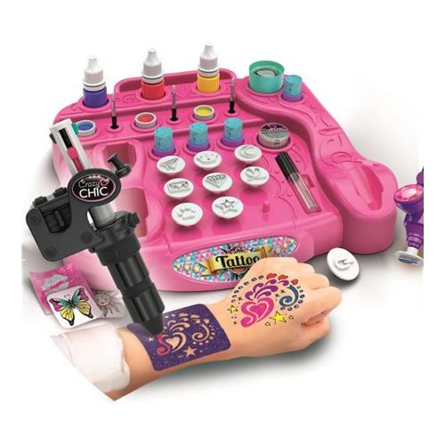 Per le amanti dei tatuaggi un kit super cool per realizzare sperimentare diverse tecniche in un unico set. Due strumenti speciali per disegnare tattoo a mano libera o con l'aiuto di stencil adesivi o stampini intercambiabili. Una console per mettersi subito all'opera con disegni e tecniche di realizzazione per creare tatuaggi unici e super personalizzati. Per ogni stile una tecnica diversa e strumenti specifici per realizzarla, in modo da lasciare liberi i bambini di esprimere le proprie abilità artistiche con la massima precisione. Grazie all'originale penna per il corpo con 4 punte colorate intercambiabili le bambine potranno divertirsi a creare i propri tatuaggi personalizzati, disegnandoli a mano o aiutandosi con gli stencil. Contiene anche uno strumento di precisione per stampare icone modulari con i colori per il corpo, pennellini, tattoo trasferibili, spugnette, glitter e colla per il corpo, stencil e un book tattoo con disegni. Sviluppa la creatività e la manualità.