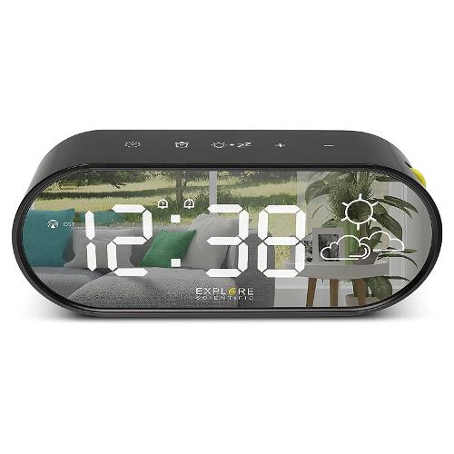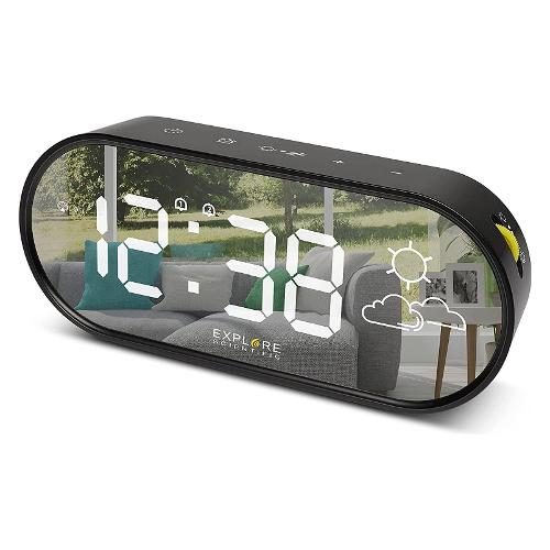 Il suo tratto caratteristico è il design. La scocca compatta, le linee pulite ed eleganti e il display LED con schermo a specchio conferiscono al device un aspetto ricercato, che lo rende non un semplice orologio ma un elemento d’arredo da poter esporre in ogni ambiente della casa. In base a dove viene posizionato, infatti, l’orologio Explore Scientific rifletterà un’immagine diversa (dovuta ai mobili presenti nella stanza) e si avrà l’impressione di avere ogni volta un prodotto nuovo.