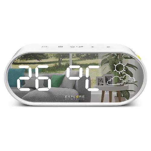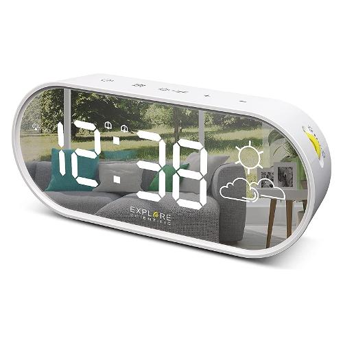 Il suo tratto caratteristico è il design. La scocca compatta, le linee pulite ed eleganti e il display LED con schermo a specchio conferiscono al device un aspetto ricercato, che lo rende non un semplice orologio ma un elemento d’arredo da poter esporre in ogni ambiente della casa. In base a dove viene posizionato, infatti, l’orologio Explore Scientific rifletterà un’immagine diversa (dovuta ai mobili presenti nella stanza) e si avrà l’impressione di avere ogni volta un prodotto nuovo.