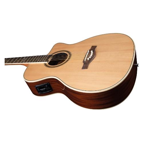 La chitarra acustica NXT A100ce con top in Abete, fasce e fondo in Mogano, manico in Mogano e tastiera in South American Roupanà è la soluzione perfetta se il tuo obiettivo è quello di imparare a suonare la chitarra e sei alla ricerca di uno shape più confortevole del classico Dreadnought, la NXT Auditorium Cutaway Eq è la migliore delle scelte.