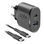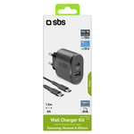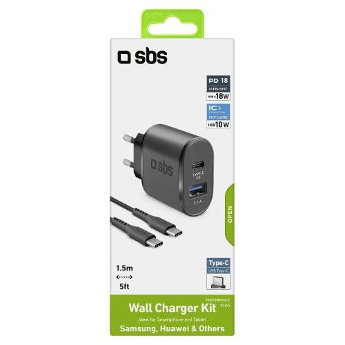 Caricabatterie USB Type-A, USB Type-C WALL CHARGER KIT 18W Power Delivery Black TEKITTRPDCCK