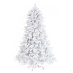 Albero bianco innevato. Struttura dei rami e base in metallo. Materiale degli aghi pe stampato ad iniezione e pvc. Rami effetto spazzola che riproducono la struttura degli aghi di pino. Apertura facilitata ad ombrello. Cartone effetto legno con etichetta colorata