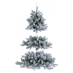 Albero innevato. Struttura dei rami e base in metallo. Materiale degli aghi pe stampato ad iniezione e pvc. Apertura facilitata ad ombrello