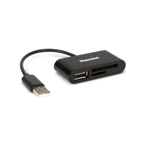 Hamlet Memory Reader è un lettore di memorie SD e MicroSD combinato con una porta USB 2.0 Tipo A ideale per collegare dispositivi USB come mouse e tastiera o per ricaricare smartphone e tablet. L'interfaccia USB-A consente di collegarlo a qualsiasi notebook o computer dotato di porta USB standard.