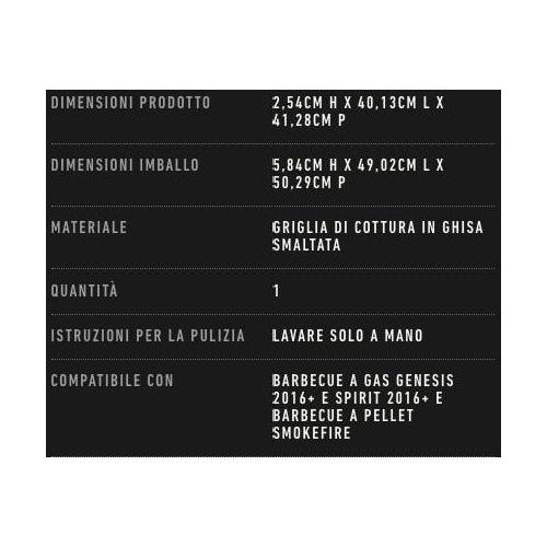 Compatibile con: Barbecue a gas Genesis 2016+ e Spirit 2016+ e barbecue a pellet SmokeFire