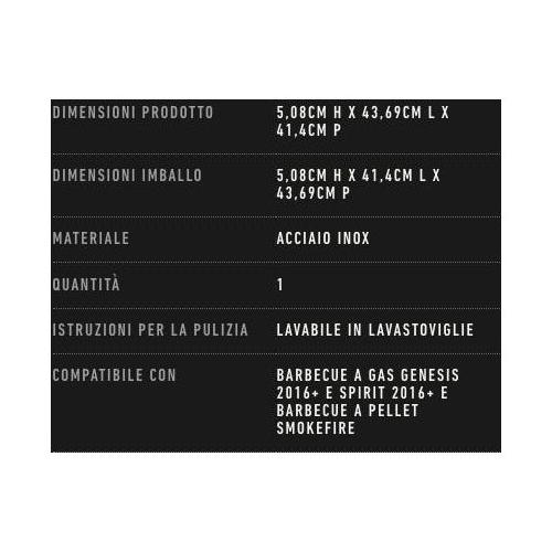 Compatibile con: Barbecue a gas Genesis 2016+ e Spirit 2016+ e barbecue a pellet SmokeFire