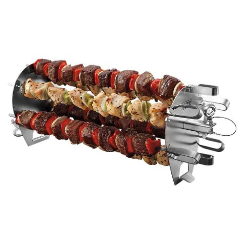 Porta la tua cucina all'aperto e prepara piatti inediti sul tuo barbecue con il WEBER CRAFTED Gourmet BBQ System. Basta posizionare il planetario di spiedini per girarrosto WEBER (acquistabile separatamente) sullo spiedo del girarrosto nel barbecue per preparare gustosi kebab al pollo, gamberi, verdure e persino frutta, cotti alla perfezione. Unità girarrosto per barbecue necessaria per l'uso.
