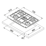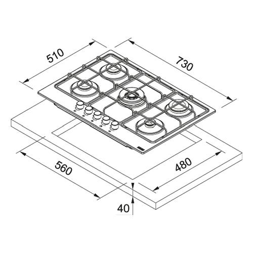 Piano cottura gas 5 zone SMART Fhsm 755 4G Dc Oa E Avena (75cm)