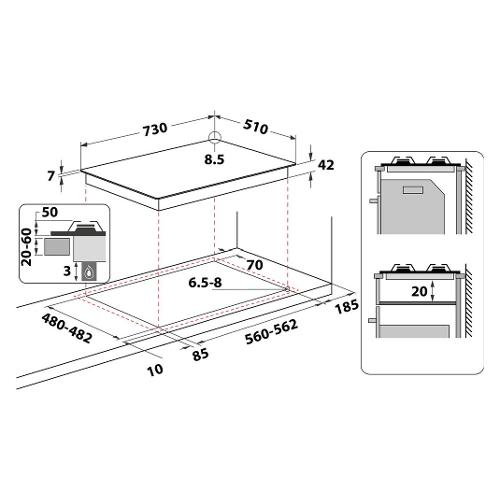 Piano cottura gas 5 zone Gmwl 758 Ixl Inox (75cm)