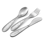 Queste posate in acciaio sono indicate per i più piccoli da 1 a 3 anni che cominciano a mangiare da soli e imparano a usare il coltello, il cucchiaio e la forchetta. È un importante esercizio perché sviluppa la precisione, il controllo dei movimenti, l’autostima e la fiducia in se stessi.
