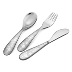 Queste posate in acciaio sono indicate per i più piccoli da 1 a 3 anni che cominciano a mangiare da soli e imparano a usare il coltello, il cucchiaio e la forchetta. È un importante esercizio perché sviluppa la precisione, il controllo dei movimenti, l’autostima e la fiducia in se stessi.