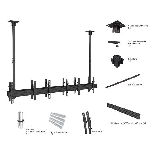 Staffa da soffitto in acciaio per display LCD, adatta per 6 monitor (3 per lato)