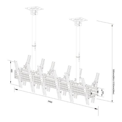 Supporto monitor TV soffitto ( 180 Kg ) VESA 600 x 400 MULTIBRACKETS Pro Black 3507