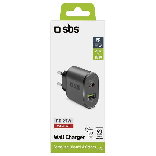 Caricabatterie USB Type-A, USB Type-C WALL CHARGER 25W Power Delivery Black TETRPD25W
