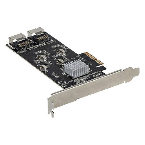 Questo controller SATA III (6 Gbps) a 8 porte consente di aggiungere otto dischi rigidi (HDD) SATA o unità a stato solido (SSD) a 6 Gbps a un computer o a un server tramite uno slot per schede PCIe x4. La scheda supporta le specifiche SATA III e PCI Express Gen 2 e quattro controller SATA per una soluzione di archiviazione dei dati ad alte prestazioni.