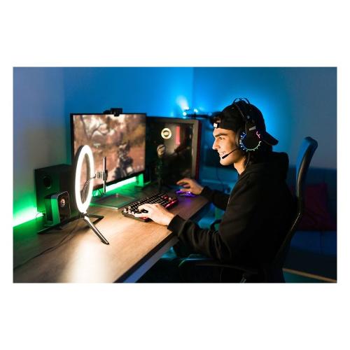 SELFIE RING MULTICOLOR è l'anello led RGB con treppiede, ideale per riprese video e selfie. L’anello led da 10’’ ha 18 modalità di illuminazione regolabili con telecomando ed è dotato di un supporto universale per smartphone ruotabile e flessibile per inquadrature a prova di regista! Contenuto confezione: anello led, treppiede, cavo USB, istruzioni