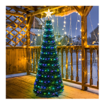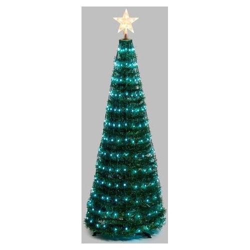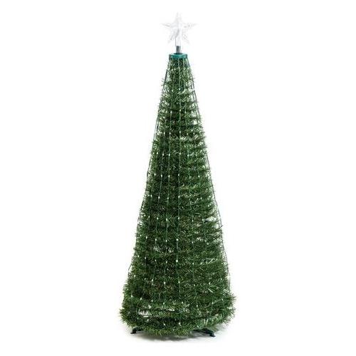 Albero Conico PVC Verde H150cm ripiegabile 234 GOCCE di Luce PIXEL LED HB 360° MULTICOLOR RGB ø4mm, Led High Brightness alta luminosità a 360° , Controller e Telecomando IR Multifunzione, Effetti Pixel Led con led controllati singolarmente, Telaio e Base a croce in metallo, Trasformatore Bassa Tensione di Sicurezza, IP44 uso Esterno e Interno, Cavo Soft Verde, Cavo di Alim. 4m, Dimensioni 4m+ø50xH150cm