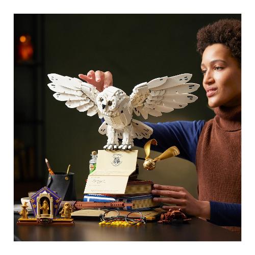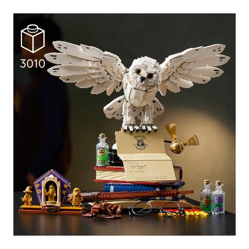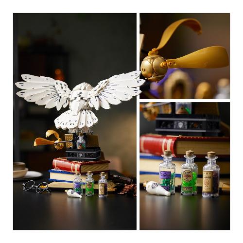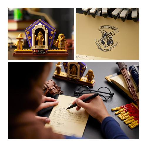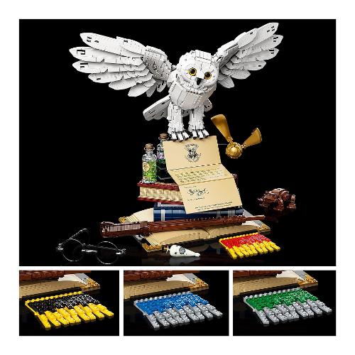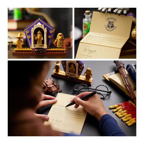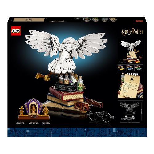 Icone di hogwarts™ - edizione del collezionista lego® harry potter™ è una riproduzione di alcune delle immagini più memorabili della serie, riunite in un pezzo da esposizione celebrativo, creato per gli appassionati adulti. Una collezione accattivante di ricordi magici questo omaggio al magico mondo di harry potter è caratterizzato da tanti manufatti rappresentativi, riuniti in un unico straordinario modello. Ci sono la bacchetta e gli occhiali di harry; la rana di cioccolato di ron; il vassoio di pozioni di hermione contenente 5 flaconi di pozioni e ingredienti magici (tra cui l’algabranchia, la “fortuna liquida” felix felicis e la pozione polisucco); il diario di tom riddle; il boccino d'oro e una sciarpa della scuola (personalizzabile con i colori di qualsiasi casa di hogwarts™). In cima a questo incantevole ensemble c’è la civetta edvige™ che trasporta un ambitissimo invito hogwarts. Questo affascinante modello è accompagnato da 3 minifigure d’oro esclusive di albus silente™, minerva mcgranitt™ e rubeus hagrid™. Inoltre è fornito con un espositore e una tessera decorata che celebra i 20 anni di lego harry potter.
