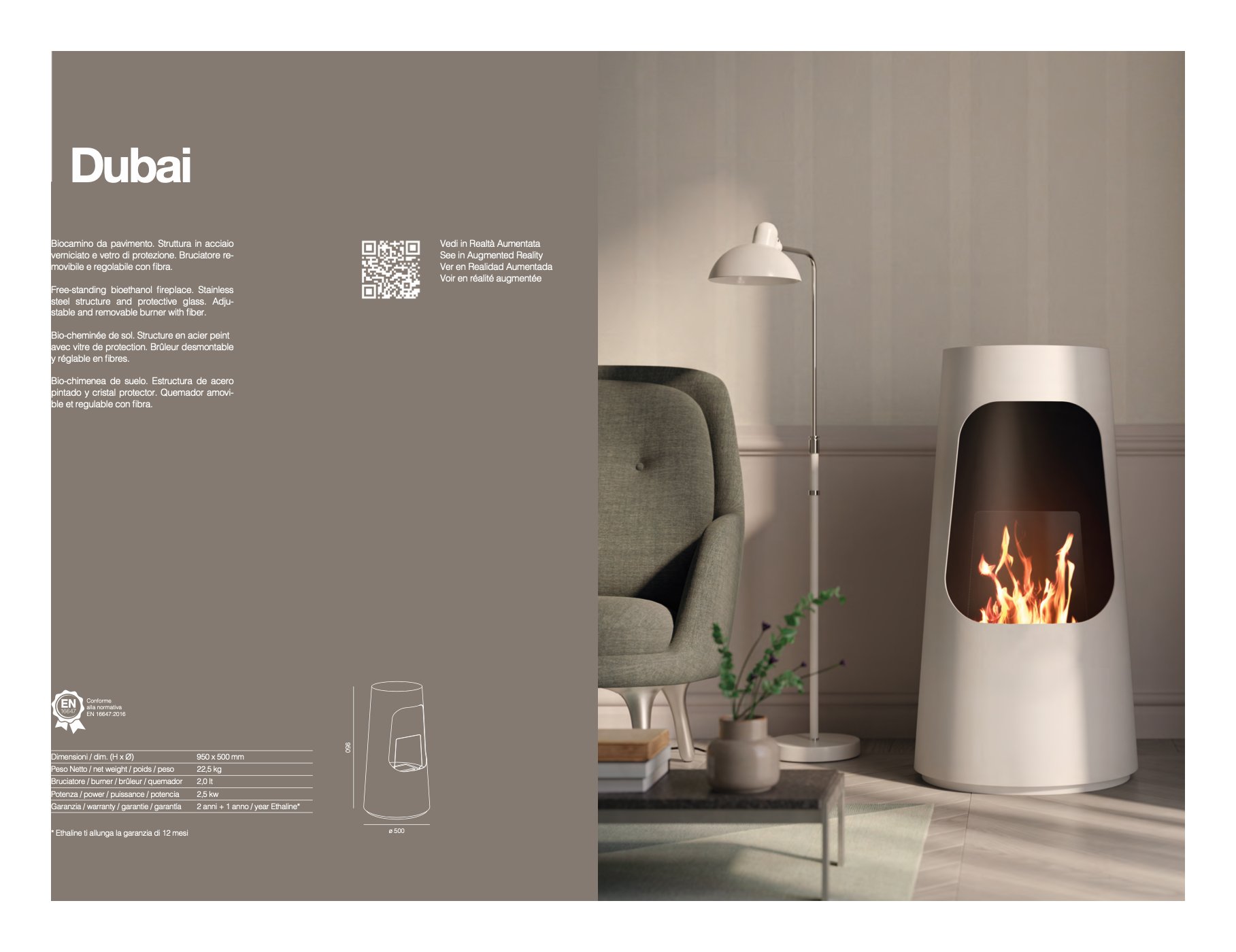 Biocamino 2,5kW DUBAI Da Pavimento Bianco