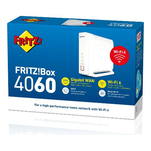 Il FRITZ!Box 4060 di AVM è il primo router wireless tri-band per Wi-Fi 6 di AVM, perfetto per la connessione in cascata ad un modem fibra ottica o per essere usato direttamente con l’ONT fornito dall’operatore.