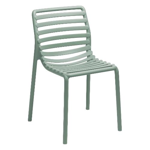 Reinterpretazione in chiave contemporanea del tema della doga per Doga Bistrot, seduta per l’esterno senza braccioli in resina fiberglass. È maneggevole, impilabile, facilmente igienizzabile e completamente riciclabile