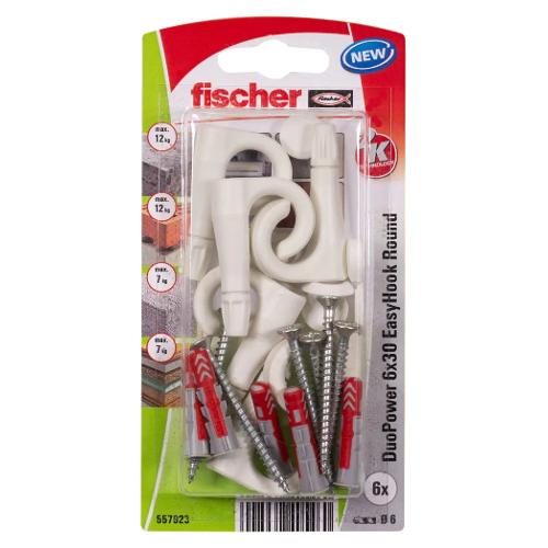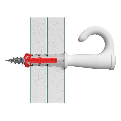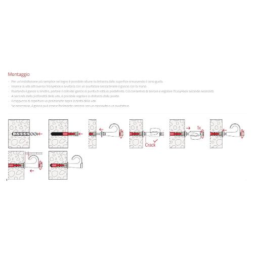 EasyHook è la nuova gamma di prodotti che trasforma le viti in ganci, occhioli aperti e occhioli chiusi. Il gancio in plastica viene fissato alla vite a testa svasata e installato in modo rapido e sicuro con DuoPower. I ganci, realizzati in plastica rinforzata con fibra di vetro, resistono a carichi elevati e garantiscono una presa sicura.Grazie al punto di rottura predefinito, il gancio può essere regolato in modo ottimale e installato con distanze variabili dalla parete. Un cappuccio di copertura fornito in dotazione garantisce un design accattivante nelle installazioni a vista. Se necessario, EasyHook può essere rimosso rapidamente e facilmente utilizzando un cacciavite o un avvitatore.