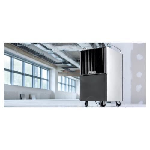 I deumidificatori professionali per trattare grandi ambienti. Seccoprof 40 P è in grado di assorbire fino a 40 litri di umidità in eccesso al giorno, senza interruzioni. Il merito è dello scarico condensa in continuo, che non richiede di estrarre la tanica, e dello sbrinamento gas caldo, che evita frequenti intervalli di attivazione e spegnimento e permette di lavorare anche vicino agli 0° C.