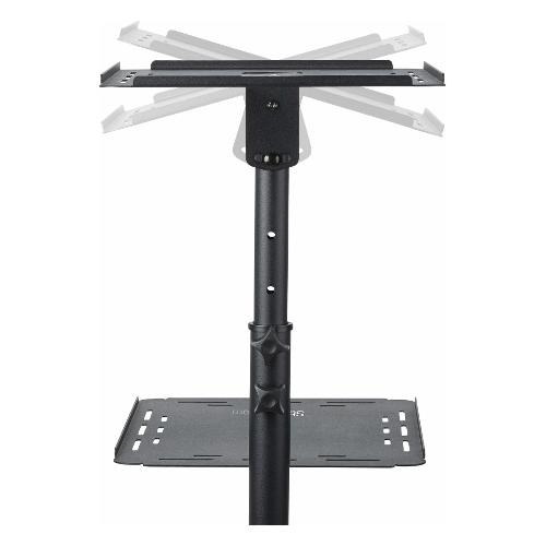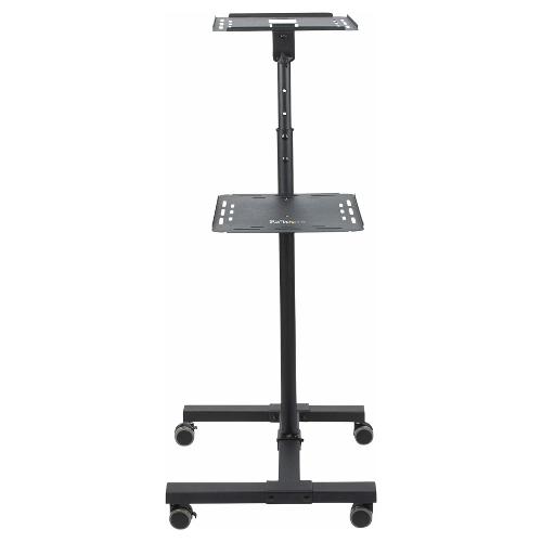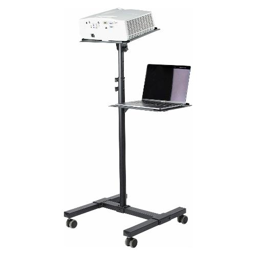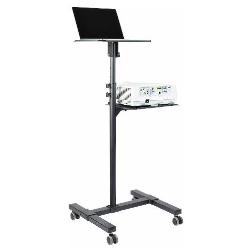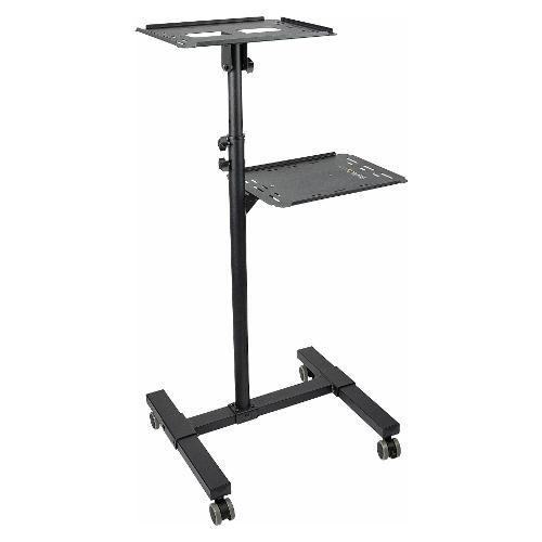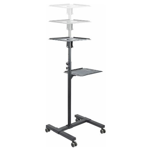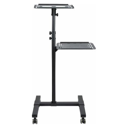 Questo supporto per proiettore e computer laptop completamente in acciaio consente di configurare una postazione multimediale mobile facilmente spostabile tra aule, sale riunioni e sale conferenze. Dispone di due piattaforme per dispositivi in grado di sostenere ciascuna un carico di 10 kg ed è dotato di resistenti rotelle (2 bloccabili) che agevolano il trasporto.
