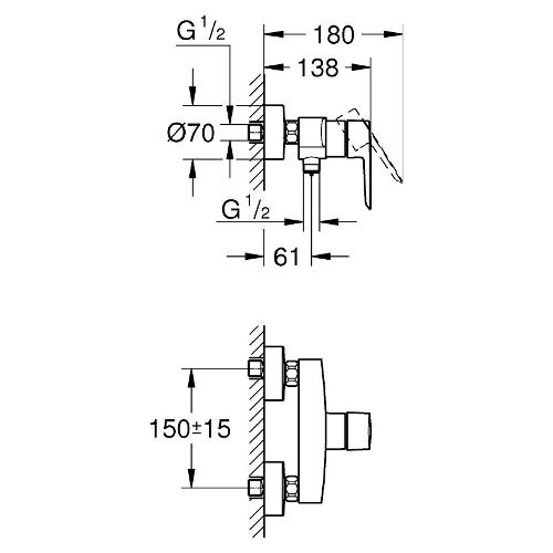 Il rubinetto per doccia grohe start offre linee moderne e attraenti e un funzionamento affidabile e confortevole nel tuo bagno. A questo è stato dato un nuovo look per soddisfare le esigenze di un bagno moderno in termini di design e funzionalità. Il nuovo start ha un profilo sottile e contemporaneo e offre un maggiore comfort di utilizzo. Progettato per essere montato a parete, questo rubinetto per doccia monocomando è dotato di una robusta maniglia in metallo per un funzionamento intuitivo. La cartuccia in ceramica grohe silkmove fornisce un controllo preciso del volume e della temperatura anno dopo anno. Un limitatore di portata regolabile riduce il consumo di acqua, mentre un limitatore di temperatura consente di risparmiare energia. Una valvola di non ritorno integrata nell'erogatore della doccia impedisce all'acqua utilizzata di rifluire nella rete idrica. Rifinito con l'abbagliante e resistente finitura cromata grohe starlight, questo rubinetto per il bagno sarà perfetto per gli anni a venire.