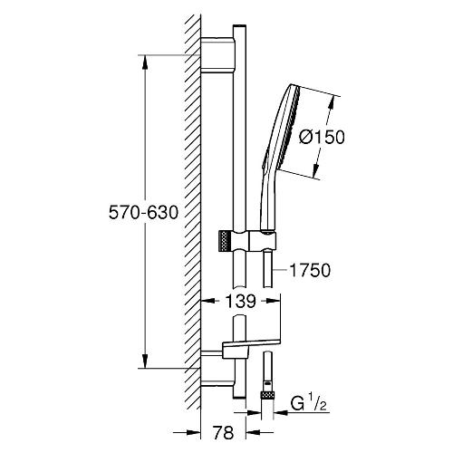Set saliscendi con doccia 3F Smartactive 150 con mensola (63cm) VITALIO Cromo starlight 26598000