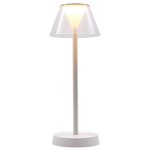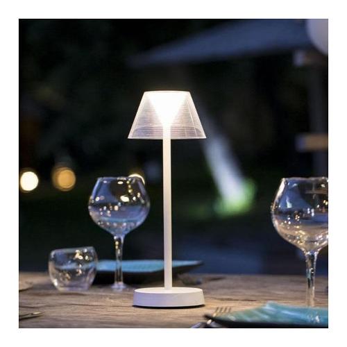 Beverly si distingue per il suo design sottile e moderno ma anche per la sua autonomia di funzionamento. Ideale come lampada da tavolo di design, lampada da comodino o per illuminare i tavoli delle vostre feste. Può essere utilizzata sia all’interno che all’esterno. Una volta completamente carica, ha un’autonomia di circa 5 ore. Il tempo di ricarica completo della lampada è di 4 ore con il cavo USB in dotazione. E’ dotata di una luce bianca calda dimmerabile che può essere regolata in 4 diverse luminosità, con un flusso luminoso di oltre 100 lumen. La base della lampada è realizzata in metallo e il suo paralume in plastica