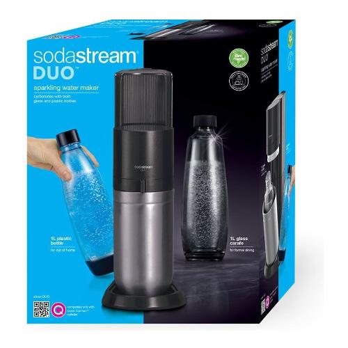 Sodastream Duo Nero è il gasatore SodaStream con il nuovo attacco rapido del cilindro gas e doppia bottiglia in vetro e PET lavabile in lavastoviglie. Grazie al design più compatto e ancor più elegante si adatta perfettamente ad ogni cucina. Modello con doppia BOTTIGLIA in VETRO e PET lavabile in lavastoviglie