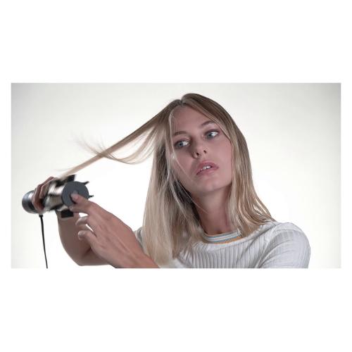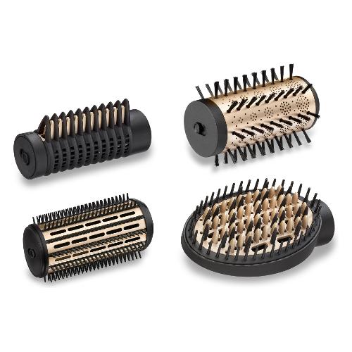 La nostra spazzola rotante ad aria calda Big Hair Luxe è dotata di 4 accessori ideati per asciugare, donare volume, lisciare, modellare e far splendere i tuoi capelli. L’ampia spazzola rotante in ceramica da 50 mm modella i capelli, replicando la piega realizzata dai professionisti. La spazzola fissa con setole rigide da 38 mm modella e dà volume alla chioma, mentre la spazzola piatta liscia delicatamente i capelli mantenendo il volume naturale; infine, la speciale testina lisciante rende i tuoi capelli lisci e luminosi. La funzione ionica rilascia ioni che controllano l'effetto crespo e rendono i capelli setosi e morbidi.