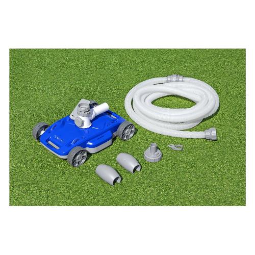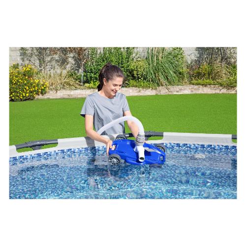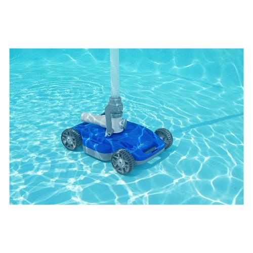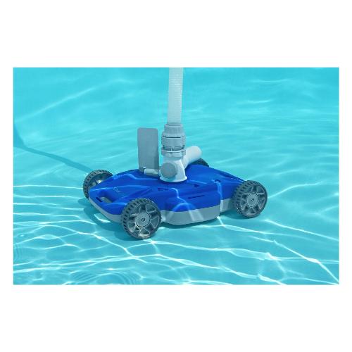 Basta collegare il tubo del pulitore alla pompa, posizionarlo nella piscina e il pulitore si attiverà automaticamente, sfruttando l'energia della pompa di filtraggio per spostarsi da solo sul fondale della piscina.