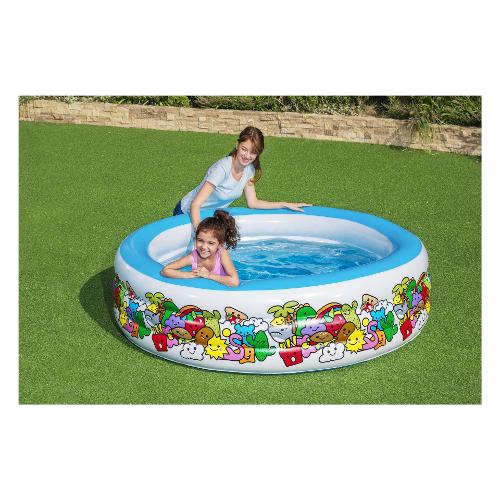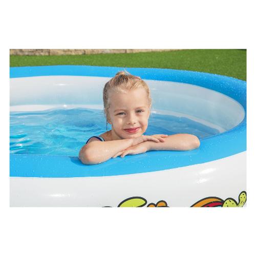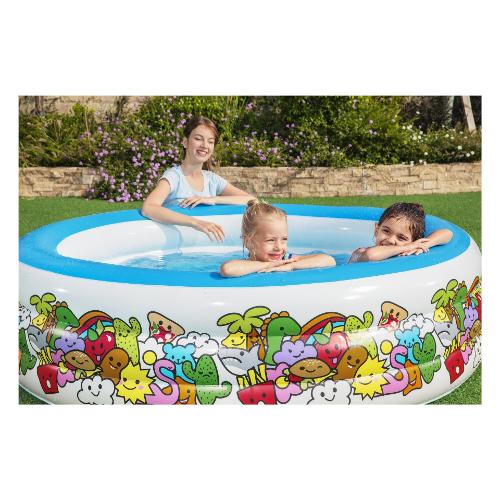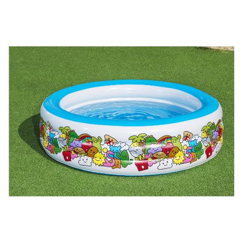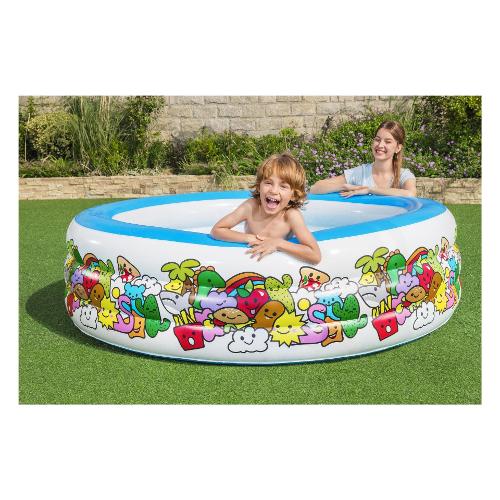 La piscina per bambini bestway® character è un ambiente di gioco all'aperto divertente, carino e funzionale per i bambini. Le pareti della piscina gonfiabili extra larghe forniscono stabilità e sono decorate con una serie di adorabili piante, frutti e personaggi fantasiosi. Questo stimolerà l'immaginazione del tuo bambino mentre sguazza e gioca per tutto il giorno. L'installazione non potrebbe essere più semplice: basta gonfiare la piscina e riempirla d'acqua. Quando arriva il momento di riporlo, puoi scaricare rapidamente l'acqua della piscina tramite la valvola di scarico e piegare la piscina in modo pratico e compatto. La piscina per bambini è adatta per far giocare più bambini, rendendola l'accessorio perfetto per i momenti di sole!