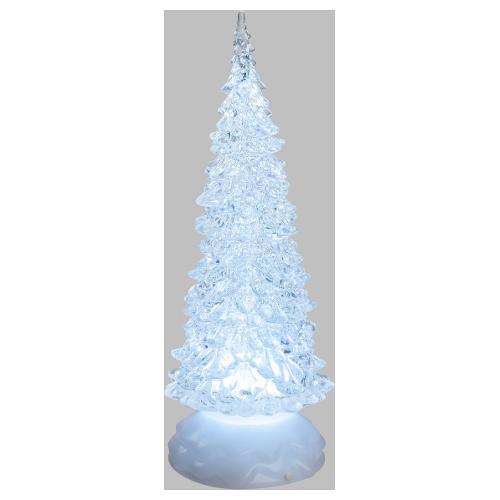 Albero Natale Ghiaccio Acrilico GLITTER LED ICE BIANCO CALDO / BIANCO / MULTI RGB, effetto luminoso scintillante con glitter illuminato nell'acqua in movimento all'interno della decorazione. Porta Batterie Integrato sotto la base, Pulsante On-Off, Predisposizione per alimentazione con Trasformatore Opzionale