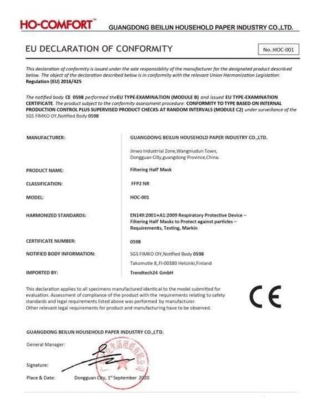 Mascherina protezione HO Comfort FFP2 1 pz (taglia unica ) Bianco HOC001WH