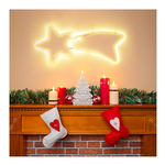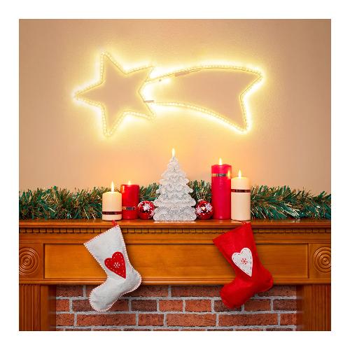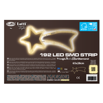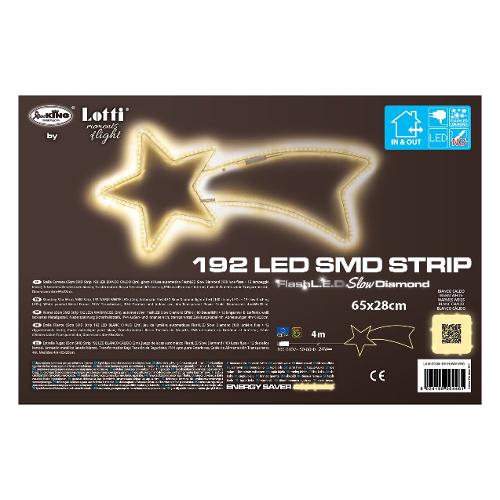Stella Cometa 65cm SMD Strip 196 LED BIANCO CALDO (2m), gioco di luce automatico FlashLED Slow Diamond (180 luce fissa + 12 lampeggio lento), Telaio metallo verniciato bianco, Trasformatore Bassa Tensione di Sicurezza, IP44 uso Esterno e Interno, Cavo di Alimentazione Trasparente 4m, Dimensioni 4m+65x28cm
