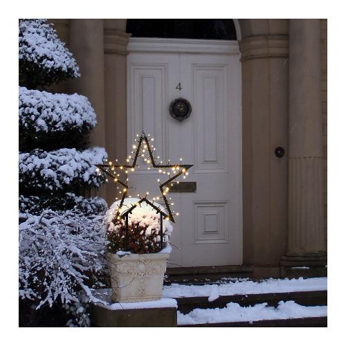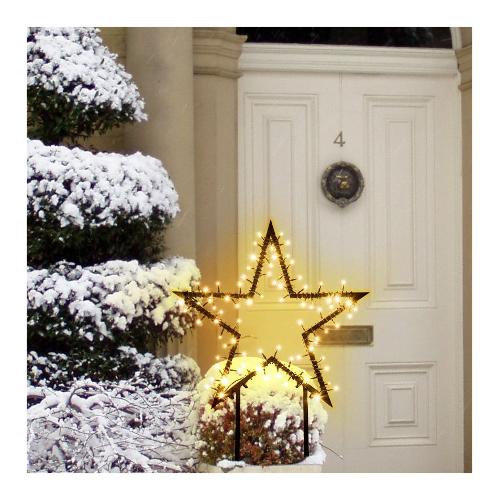 Stella ø55cm GMD Multiuso 80 LED BIANCO CALDO ø5mm, Telaio metallo Nero con picchetti da giardino H45cm removibili, Multiuso per Giardino o da Appendere, Memory Controller 8 giochi di luce selezionabili con Timer 8 ore On (16 ore Off) disinseribile tramite Pulsante Luminoso integrato nel Trasformatore di Sicurezza, 31V Smart Connect compatibile, IP44 uso Esterno, Cavo Alim. Nero 4m, Dim. H45+ø55cm