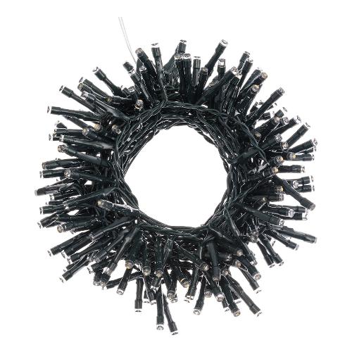 Catena lineare tl-ir 500 led bianco caldo ø5mm reflex, telecomando ir max 4m 11 funzioni, on-off, 8 giochi di luce selezionabili, timer 8 ore (disattivabile), a batteria 3xd 1,5v, ip44 uso esterno e interno, cavo di alimentazione verde 50cm, dimensioni 0,5+20m, scatola lusso color (xkc art. Tl-ir 500-c 3d)