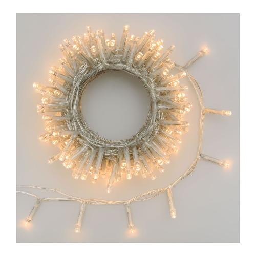 Catena lineare xtl-ir 180 led bianco caldo ø5mm reflex, telecomando ir max 4m (13 pulsanti) 15 funzioni, on-off, 8 giochi di luce selezionabili con luminosità variabile a 4 livelli, timer 8 ore on (disattivabile), a batteria 3xaa 1,5v, uso esterno e interno, cavo trasparente, dimensioni 0,5+7,2m, scatola lusso color (xkc art. Tl-ir 180-cx 3aa).