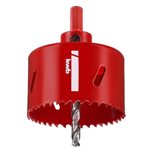 La sega a tazza bimetallica kwb HSS con punta centrale da 6 mm è stata sviluppata per l'uso artigianale e professionale nelle finiture d'interni, nei lavori di elettricista e di installazione, nell'assemblaggio di piani di lavoro e tavoli da cucina e per tutti i lavori in legno. Grazie alla dentatura variabile progressiva in acciaio HSS, non si inceppa e consente una rapida rimozione dei trucioli. La sega a tazza bimetallica kwb HSS taglia con precisione in un'ampia gamma di materiali, tra cui acciaio (strutturale), ghisa grigia, lamiera d'acciaio, alluminio, bronzo, rame, plastica, acrilico, cartongesso, legno duro e morbido, legno rivestito, legno strutturale, pannelli in PRFV, vinile, isolamento in fibra di legno, compensato e pannelli laminati (HPL). Ha una profondità di taglio di 38 mm e un attacco esagonale 10 mm per avvitatori e trapani elettrici e a batteria