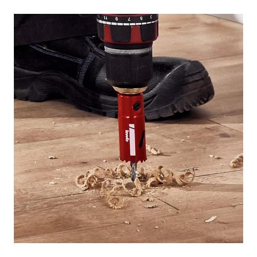 La sega a tazza bimetallica kwb HSS con punta centrale da 6 mm è stata sviluppata per l'uso artigianale e professionale nelle finiture d'interni, nei lavori di elettricista e di installazione, nell'assemblaggio di piani di lavoro e tavoli da cucina e per tutti i lavori in legno. Grazie alla dentatura variabile progressiva in acciaio HSS, non si inceppa e consente una rapida rimozione dei trucioli. La sega a tazza bimetallica kwb HSS taglia con precisione in un'ampia gamma di materiali, tra cui acciaio (strutturale), ghisa grigia, lamiera d'acciaio, alluminio, bronzo, rame, plastica, acrilico, cartongesso, legno duro e morbido, legno rivestito, legno strutturale, pannelli in PRFV, vinile, isolamento in fibra di legno, compensato e pannelli laminati (HPL). Ha una profondità di taglio di 38 mm e un attacco esagonale 10 mm per avvitatori e trapani elettrici e a batteria