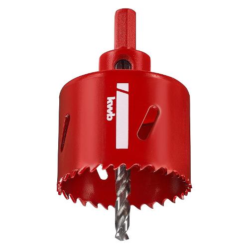 La sega a tazza bimetallica kwb HSS con punta centrale da 6 mm è stata sviluppata per l'uso artigianale e professionale nelle finiture d'interni, nei lavori di elettricista e di installazione, nell'assemblaggio di piani di lavoro e tavoli da cucina e per tutti i lavori in legno. Grazie alla dentatura variabile progressiva in acciaio HSS, non si inceppa e consente una rapida rimozione dei trucioli. La sega a tazza bimetallica kwb HSS taglia con precisione in un'ampia gamma di materiali, tra cui acciaio (strutturale), ghisa grigia, lamiera d'acciaio, alluminio, bronzo, rame, plastica, acrilico, cartongesso, legno duro e morbido, legno rivestito, legno strutturale, pannelli in PRFV, vinile, isolamento in fibra di legno, compensato e pannelli laminati (HPL). Ha una profondità di taglio di 38 mm e un attacco esagonale 10 mm per avvitatori e trapani elettrici e a batteria