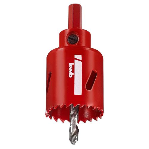 La sega a tazza bimetallica kwb HSS con punta centrale da 6 mm è stata sviluppata per l'uso artigianale e professionale nelle finiture d'interni, nei lavori di elettricista e di installazione, nell'assemblaggio di piani di lavoro e tavoli da cucina e per tutti i lavori in legno. Grazie alla dentatura variabile progressiva in acciaio HSS, non si inceppa e consente una rapida rimozione dei trucioli. La sega a tazza bimetallica kwb HSS taglia con precisione in un'ampia gamma di materiali, tra cui acciaio (strutturale), ghisa grigia, lamiera d'acciaio, alluminio, bronzo, rame, plastica, acrilico, cartongesso, legno duro e morbido, legno rivestito, legno strutturale, pannelli in PRFV, vinile, isolamento in fibra di legno, compensato e pannelli laminati (HPL). Ha una profondità di taglio di 38 mm e un attacco esagonale 10 mm per avvitatori e trapani elettrici e a batteria
