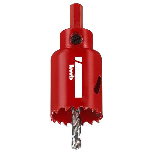 La sega a tazza bimetallica kwb HSS con punta centrale da 6 mm è stata sviluppata per l'uso artigianale e professionale nelle finiture d'interni, nei lavori di elettricista e di installazione, nell'assemblaggio di piani di lavoro e tavoli da cucina e per tutti i lavori in legno. Grazie alla dentatura variabile progressiva in acciaio HSS, non si inceppa e consente una rapida rimozione dei trucioli. La sega a tazza bimetallica kwb HSS taglia con precisione in un'ampia gamma di materiali, tra cui acciaio (strutturale), ghisa grigia, lamiera d'acciaio, alluminio, bronzo, rame, plastica, acrilico, cartongesso, legno duro e morbido, legno rivestito, legno strutturale, pannelli in PRFV, vinile, isolamento in fibra di legno, compensato e pannelli laminati (HPL). Ha una profondità di taglio di 38 mm e un attacco esagonale 10 mm per avvitatori e trapani elettrici e a batteria