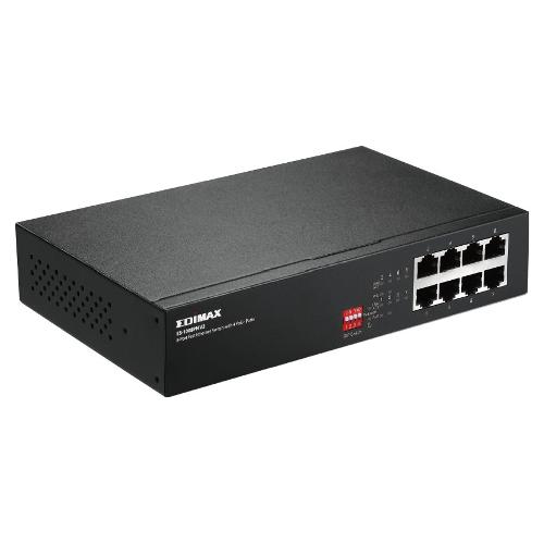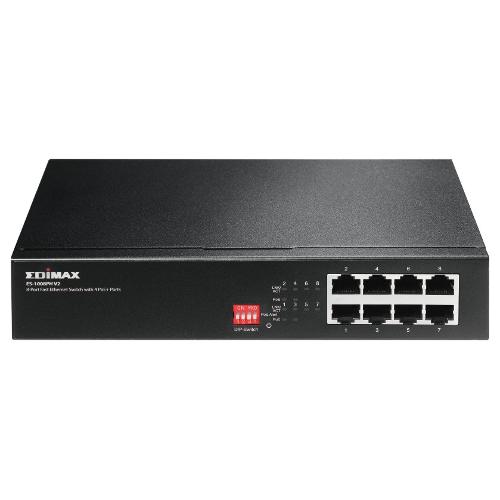 Edimax ES-1008PH V2 è uno switch Fast Ethernet a otto porte con quattro porte PoE+ progettato per l'uso in ambienti di rete domestici, di piccole o medie dimensioni.
