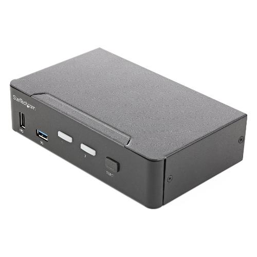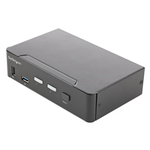 Questo switch KVM a 2 porte consente di sfruttare le funzionalità dei display digitali 4K (60 Hz) e di controllare fino a due computer collegati.