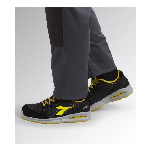 Pelle crosta scamosciata e mesh con sistema di traspirazione laterale . Puntale in alluminio 200J.Fodera in Nylon ultra traspirante, plantare traspirante . Intersuola e battistrada PU