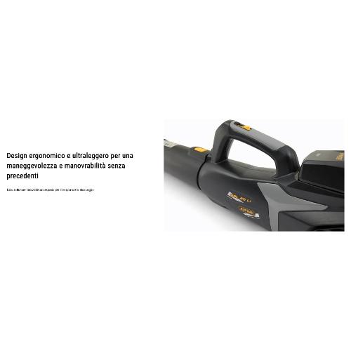 Capace di generare una velocità massima dell'aria di 32 m/s, pari a ben 115 km/h, il soffiatore ABL 20 Li Kit assicura prestazioni pari a quelle delle macchine con motore a scoppio ed è in grado di spostare anche materiali più pesanti come ramoscelli e sfalci di siepi.